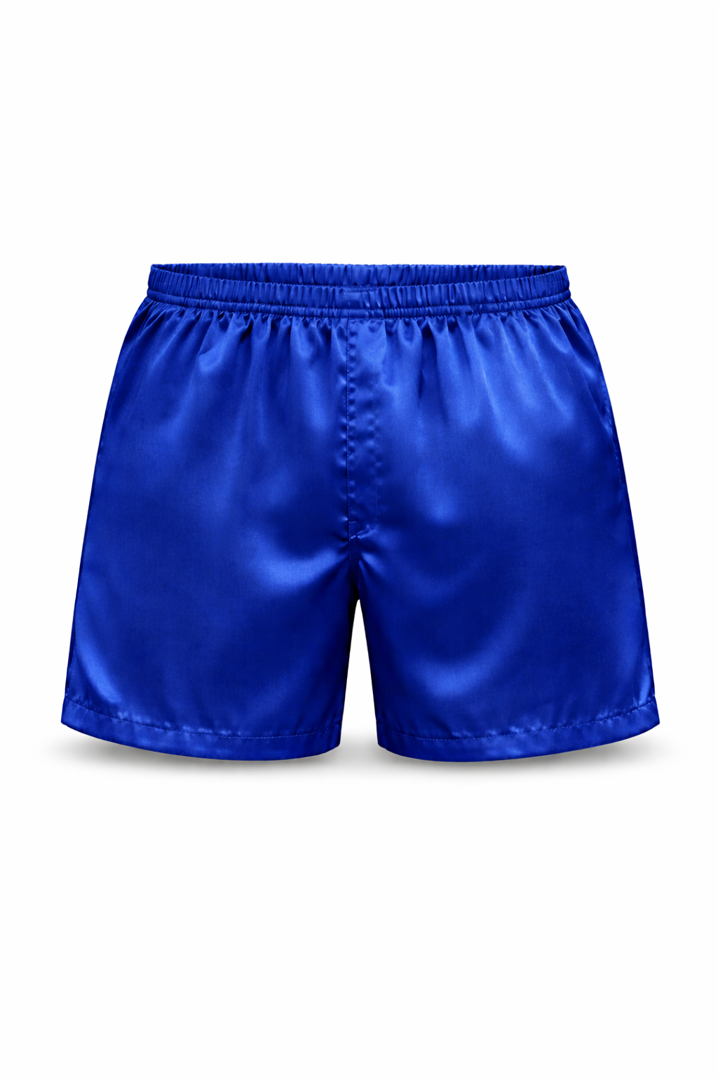 Blue satin shorts representing the fluidity and calm energy of the Water element. Their soft, lightweight texture feels fresh against the skin, while the elastic waistband ensures a relaxed and flexible fit.