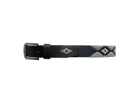 $55.00A luxurious leather belt by Simbec Bovino, featuring handmade fabric meticulously woven by Colombian artisans using premium imported thread, and finished with a sleek smoked buckle.